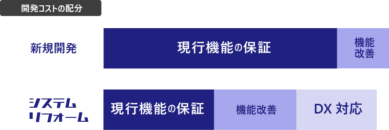 既存システムを更新してから改善を取り込むことにより、システム構築します。